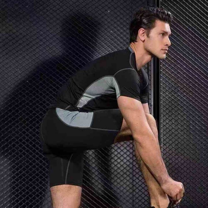 健身服运动男士短袖速干紧身衣夏季跑步健身休闲短袖透...