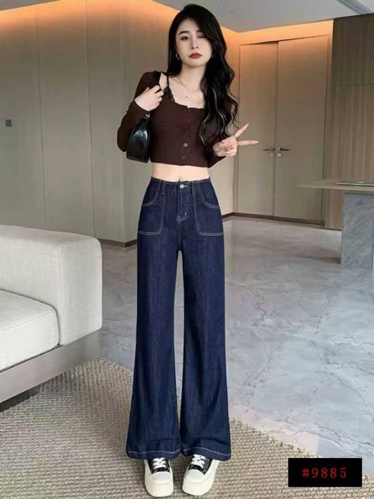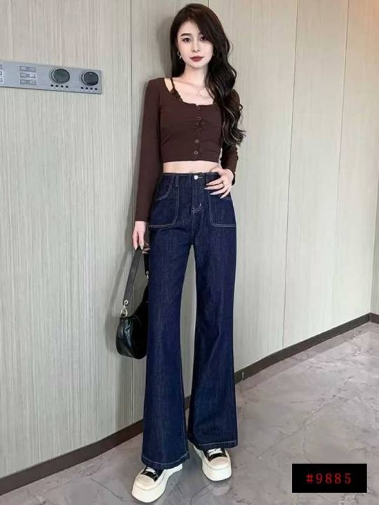 复古蓝微喇牛仔裤288件9.5,春秋高腰显瘦,裤头包边,...