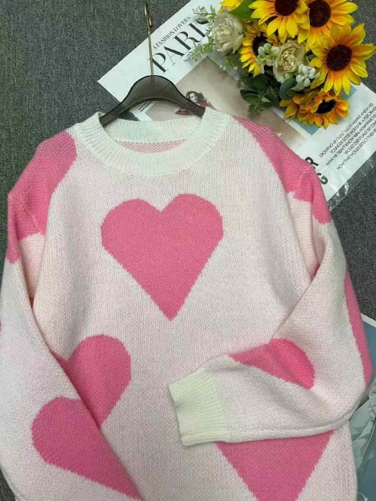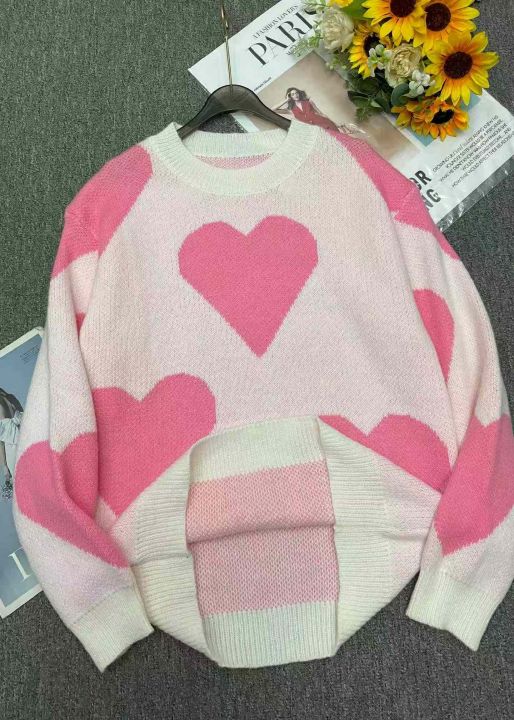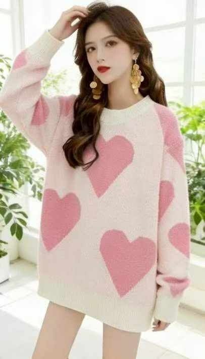 秋冬新款公司原单大版宽松慵懒风爱心提花北极绒套头毛衣,独立包装,码数S- 2XL码,90件左右,全清7.9元超低价秒杀!