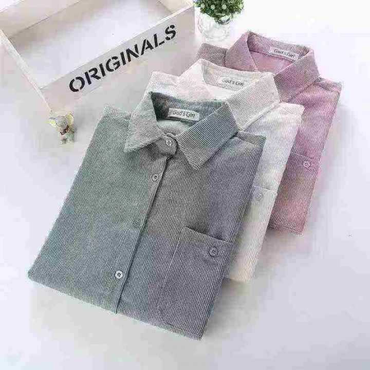 韩版宽松灯芯绒衬衫女2025新款长袖百搭口袋外套潮,独...