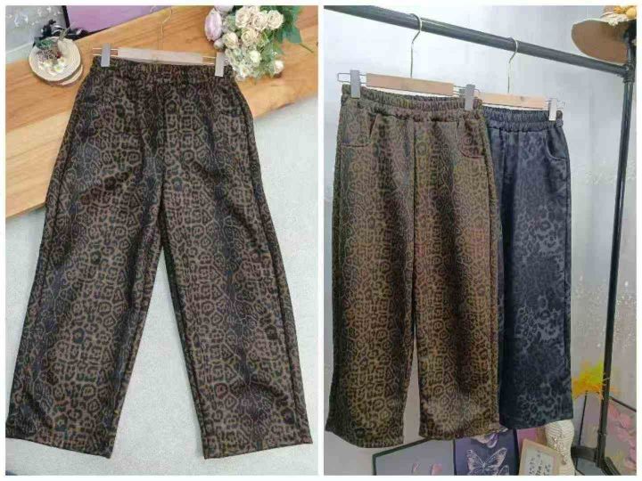 捡漏捡漏,4.9清仓处理,不分货,700件左右,2-7码,复古时尚豹纹印花九分裤女高腰小众休闲显瘦遮肉阔腿裤子松紧腰,质量很好,有独立包装。
