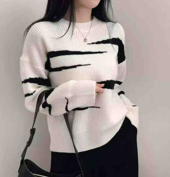 秋冬新款宽松慵懒风提花加厚圆领北极绒套头毛衣,独立...