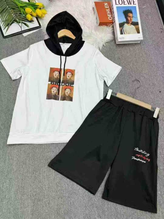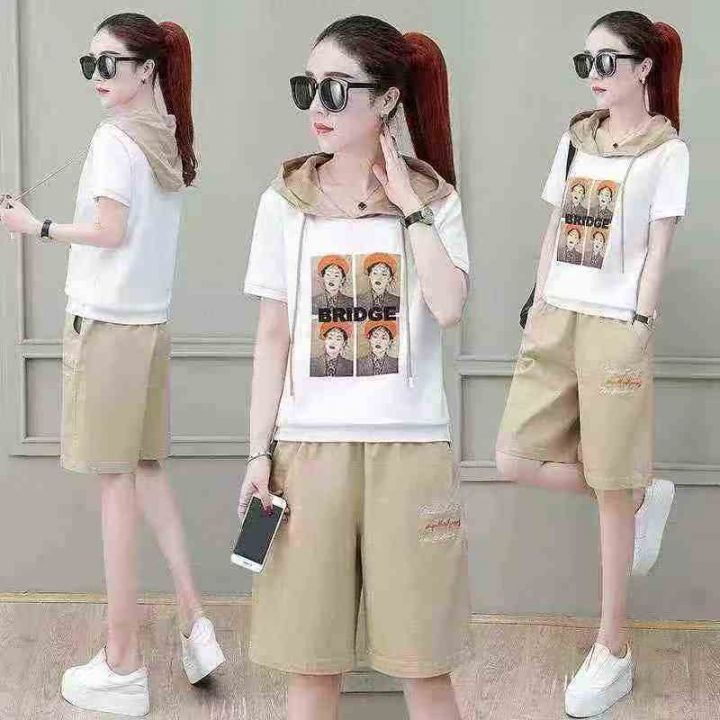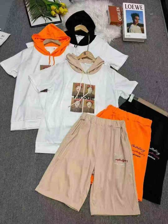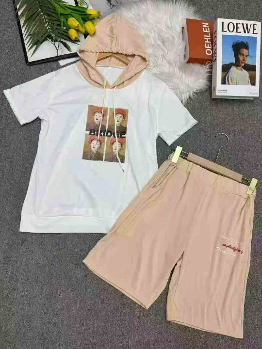 宽松韩版显瘦时尚印花运动服套装女夏天两件套洋气连帽短袖休闲服,独立包装,码数1-6,数量276套,货号129#7