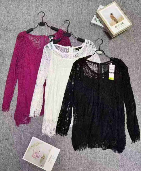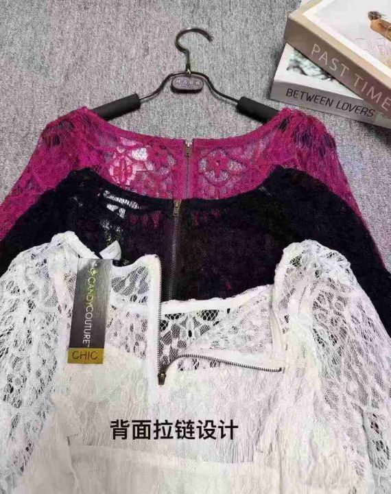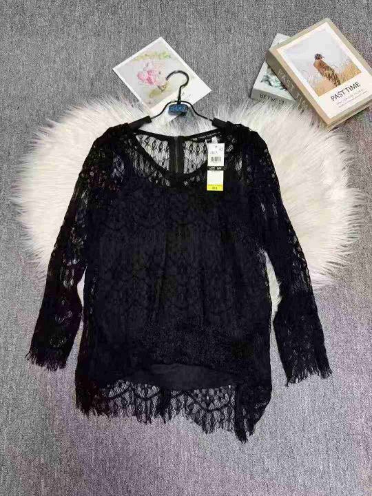洋气高档网纱蕾丝上衣两件套,整款三色(黑色为主),品质好带吊牌,数量780件左右,码数s-3xl,独立包装,全清5.5,分货0.5