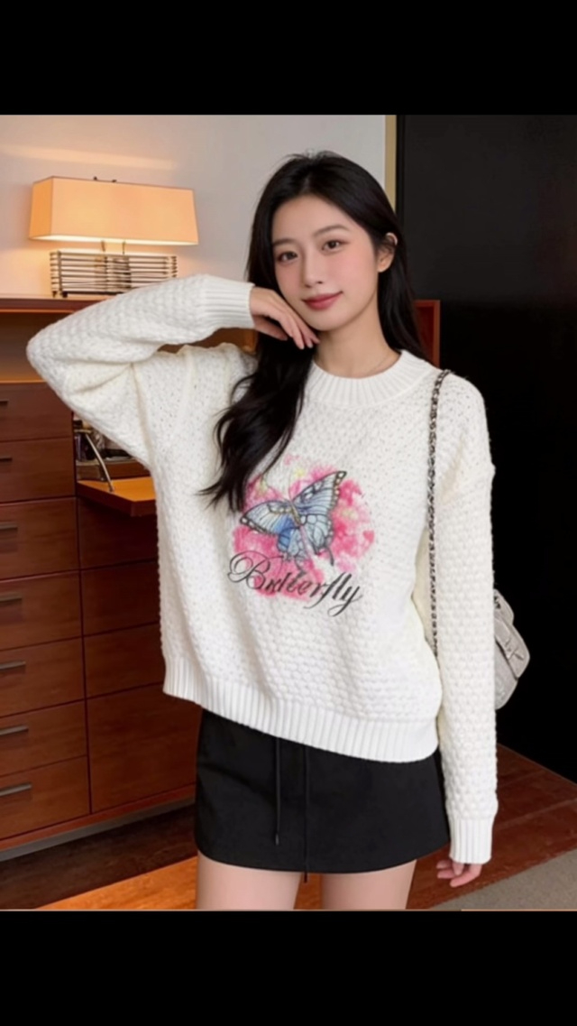 秋冬新款宽松慵懒风百搭印花视频系列款北极绒套头毛衣,独立包装,码数S--2...
