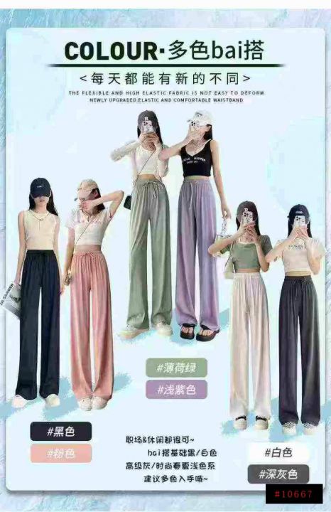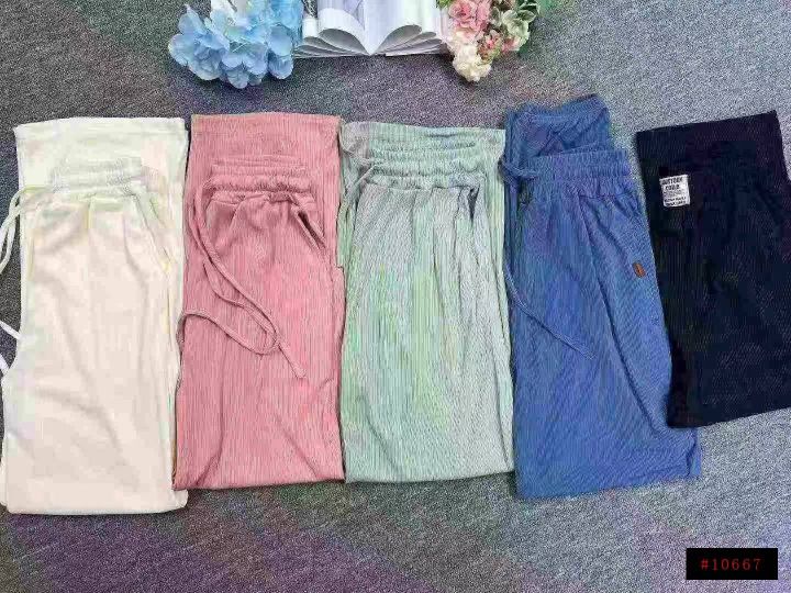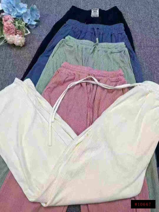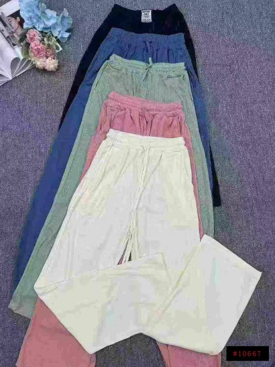 [福]冰丝裤百褶松紧腰休闲阔腿裤700条左右,码数1~9码,独立包装。多色百搭垂坠感好!大部分如图5色,少量杂色。