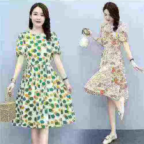 全清价9.8时尚简约大方气质优雅碎花收腰显瘦连衣裙,独立包装,雪纺料,两...