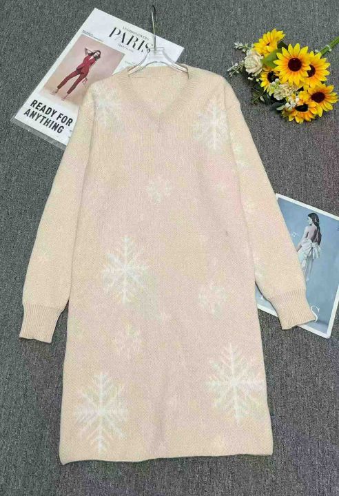 秋冬新款宽松慵懒风提花加厚北极绒V领套头毛衣连衣裙,独立包装,码数S-2XL码, 93件左右,全清8.9元超低价秒杀!