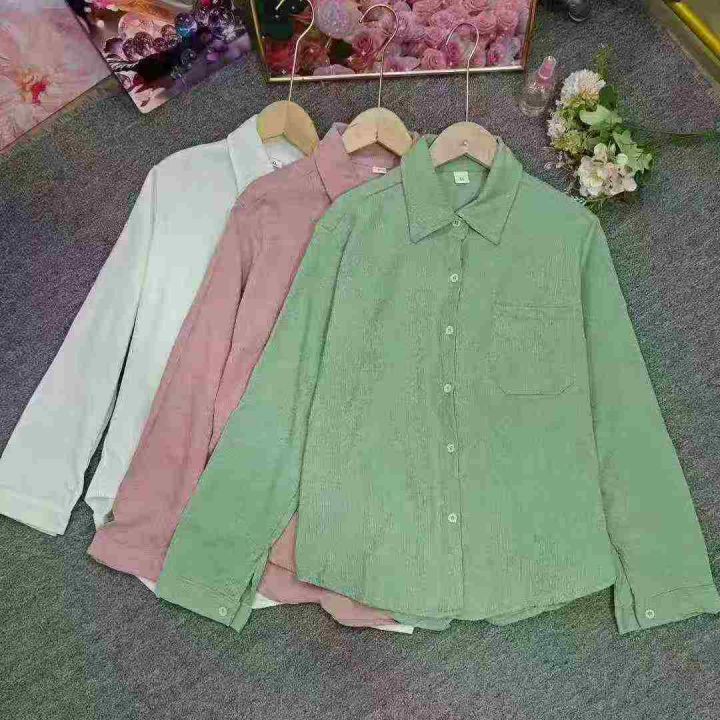韩版宽松灯芯绒衬衫女2025新款长袖百搭口袋外套潮,独立包装,整款3色(绿色多)S.M.XL.2xl码,1300件左右,7.9元清,分货加1