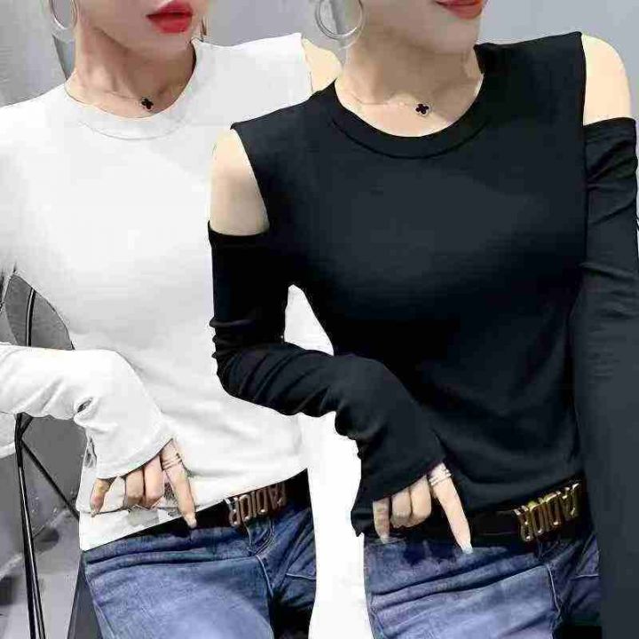 933件新款圆领露肩修身显瘦气质洋气ins长袖打底衫,整款6个色,尺码S-3XL,高弹力,后领包边,独立包装带吊牌