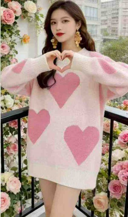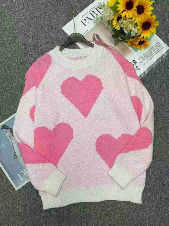 秋冬新款公司原单大版宽松慵懒风爱心提花北极绒套头毛衣,独立包装,码数S- 2XL码,90件左右,全清7.9元超低价秒杀!
