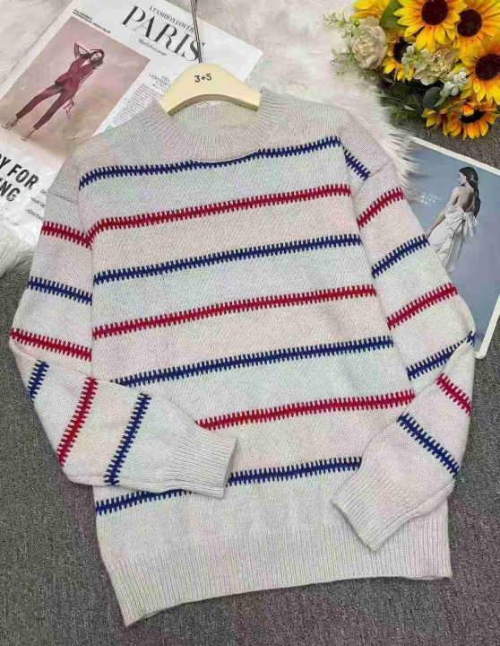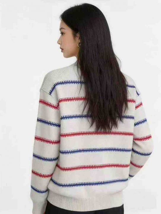 秋冬新款撞色条纹宽松慵懒风北极绒套头毛衣,独立包装...