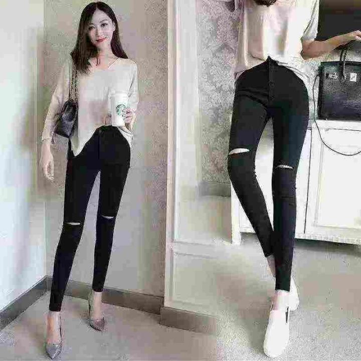 842条破洞打底裤女外穿春秋2025新款高腰紧身弹力九分显瘦小脚铅笔裤子,单款单色,独立原包装原吊带,码数S一4XL,有码数清单。。 货号:24862