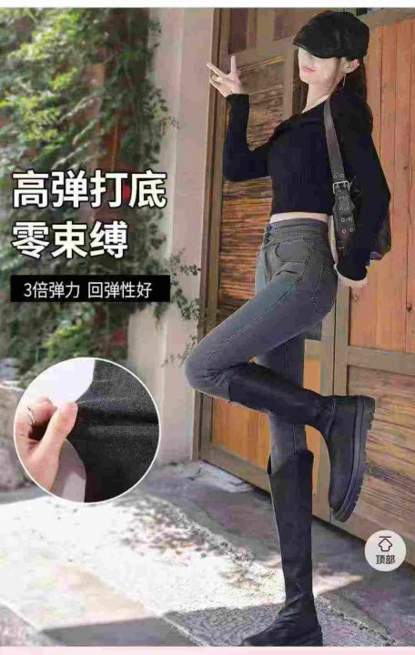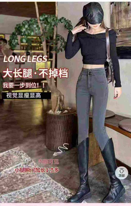 秋冬季女士加绒烟灰色弹力小脚牛仔裤,单款单色,没包...