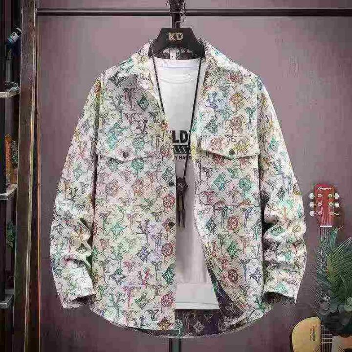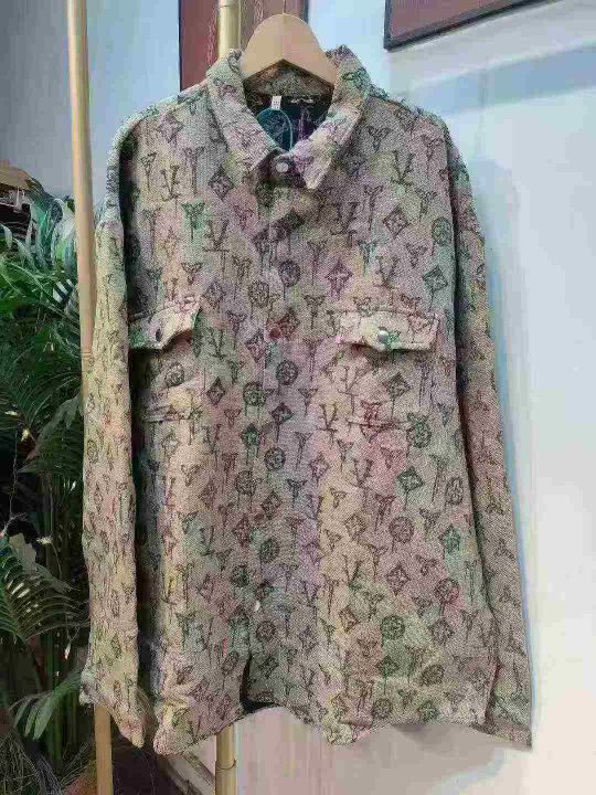 79件大码肥佬男装 潮牌vintage复古编织提花满印长袖衬衫男春秋款网红宽松大版翻领衬衣外套,单款单色 面料厚实,码数7XL-8XL码(200-300斤可穿),独立包装带吊牌。。 货号:24862