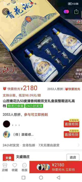卖的太便宜了,最后5箱,超低价出售,全清200元一箱,一箱起发230元,山西杏花村酒业股份 青花氿礼盒 53度 一箱3提 一提475ml*2瓶 带4个杯子 一个分酒器 大礼盒 平台干净。 货号:29195