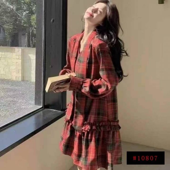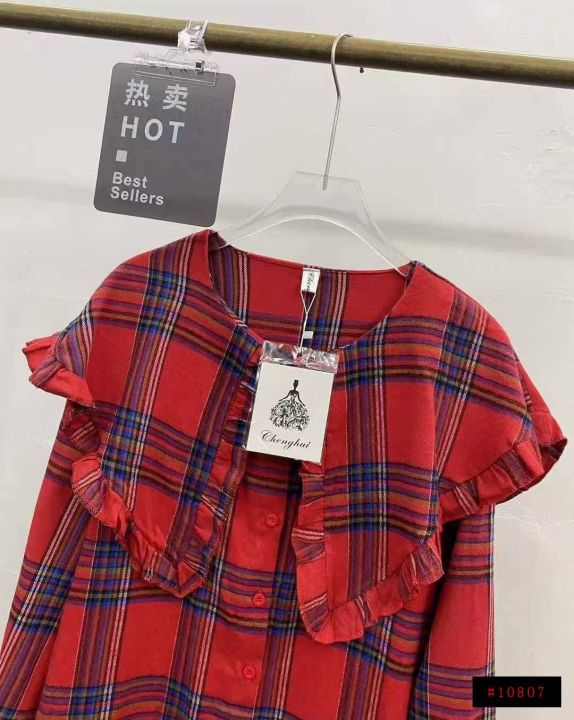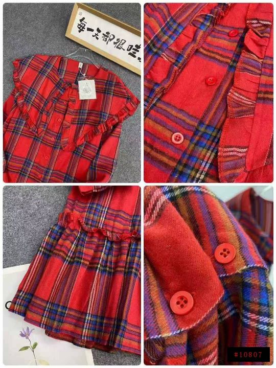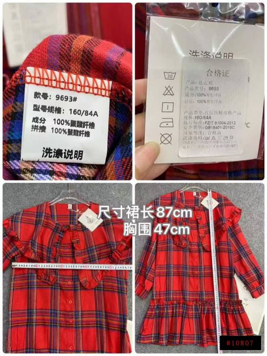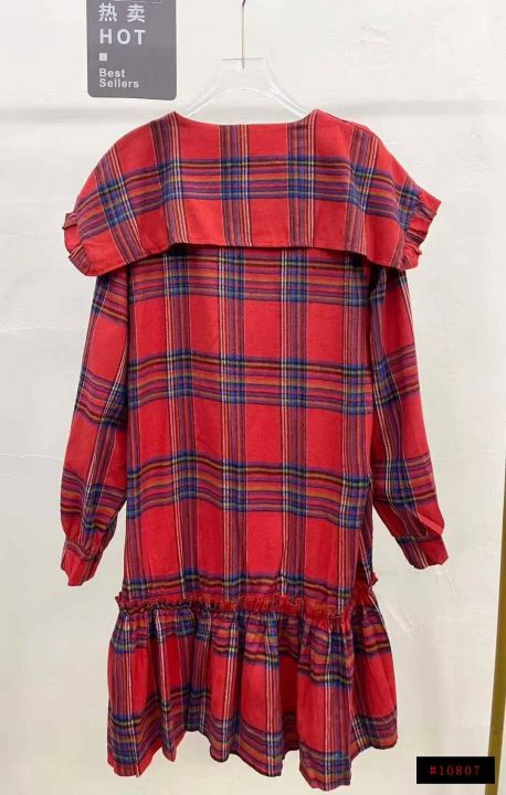 复古格子连衣裙121件8.5,翻领荷叶边,褶皱拼接,码标...