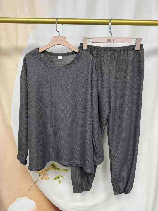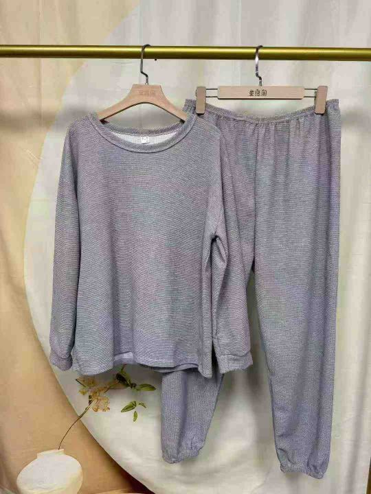 春秋季长袖套装华夫格休闲简约家居服可外穿套装,独立包装,124套,尺码1.2.3.4(M-2XL)