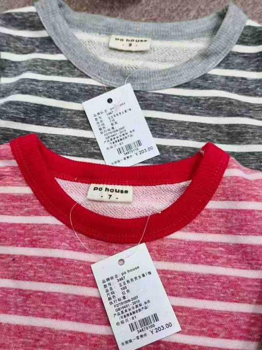 整首齐码童装长袖T桖580件,2色带装饰,码数:95--140,货品干净,5.5元全清。