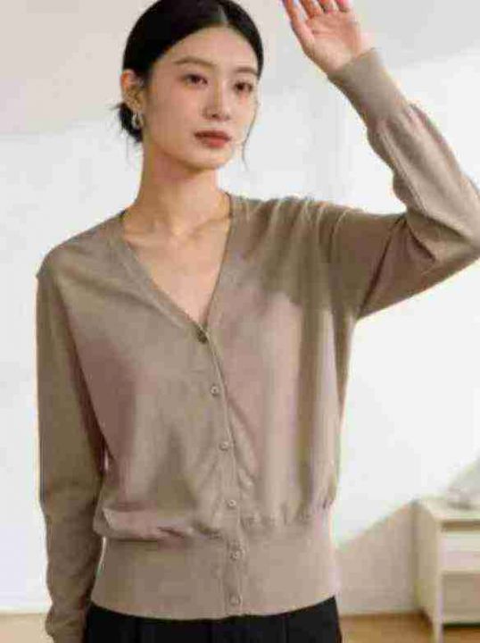 春秋新款美拉德色系宽松百搭净版针织毛衣开衫,独立包...