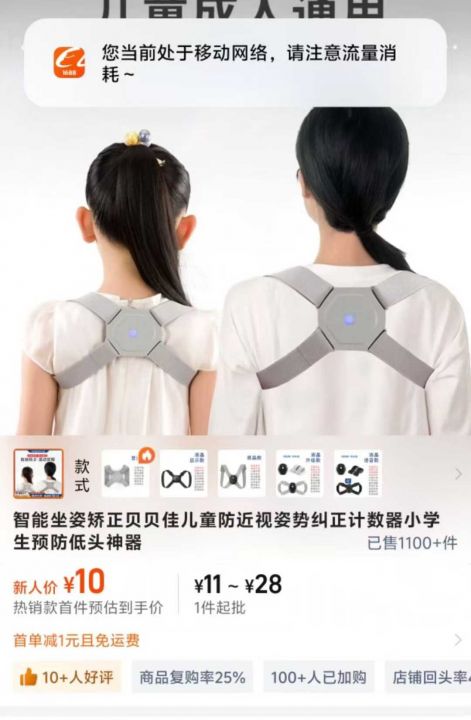 1000盒智能坐姿矫正器充电款,儿童成人都可用,全清每盒2元秒!