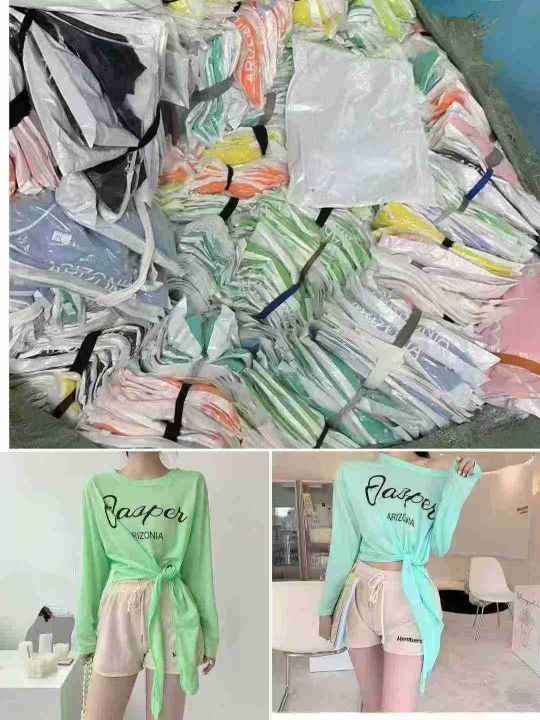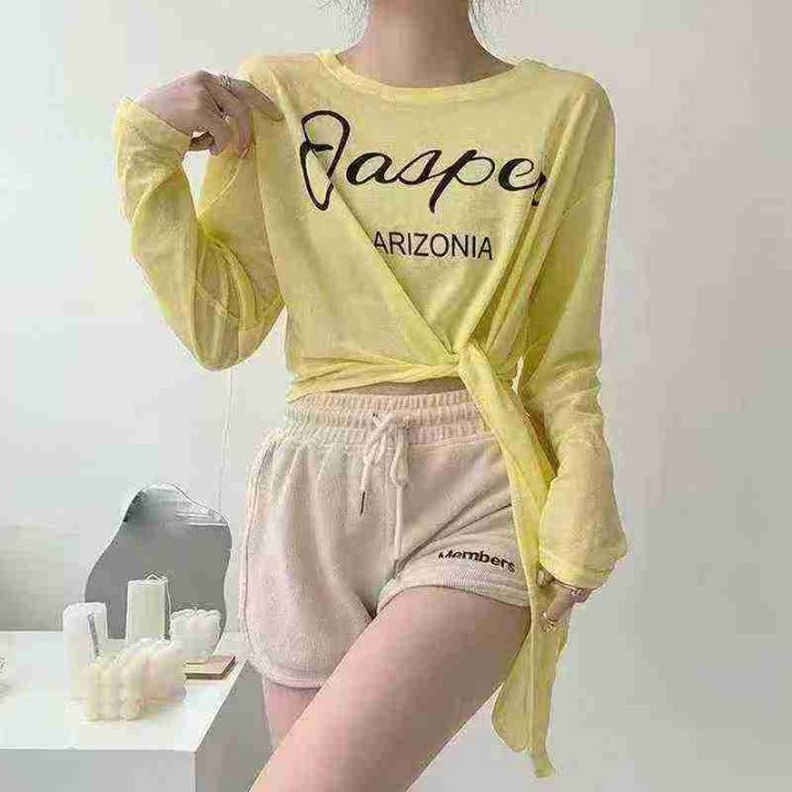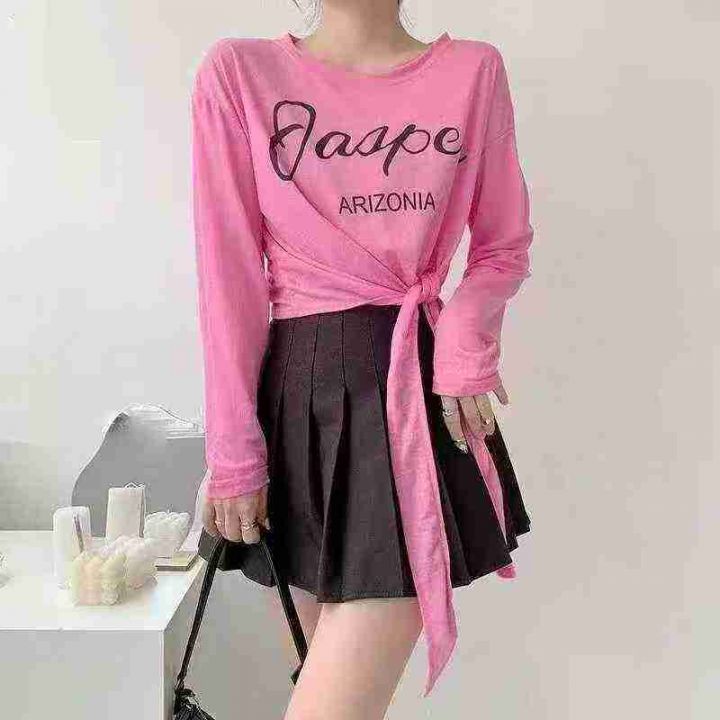 882件夏季热卖甜酷薄款开叉长袖正肩显瘦T恤女辣妹宽松百搭冰丝防晒罩衫上衣,独立包装,均码,全清价3.9元,分货加1