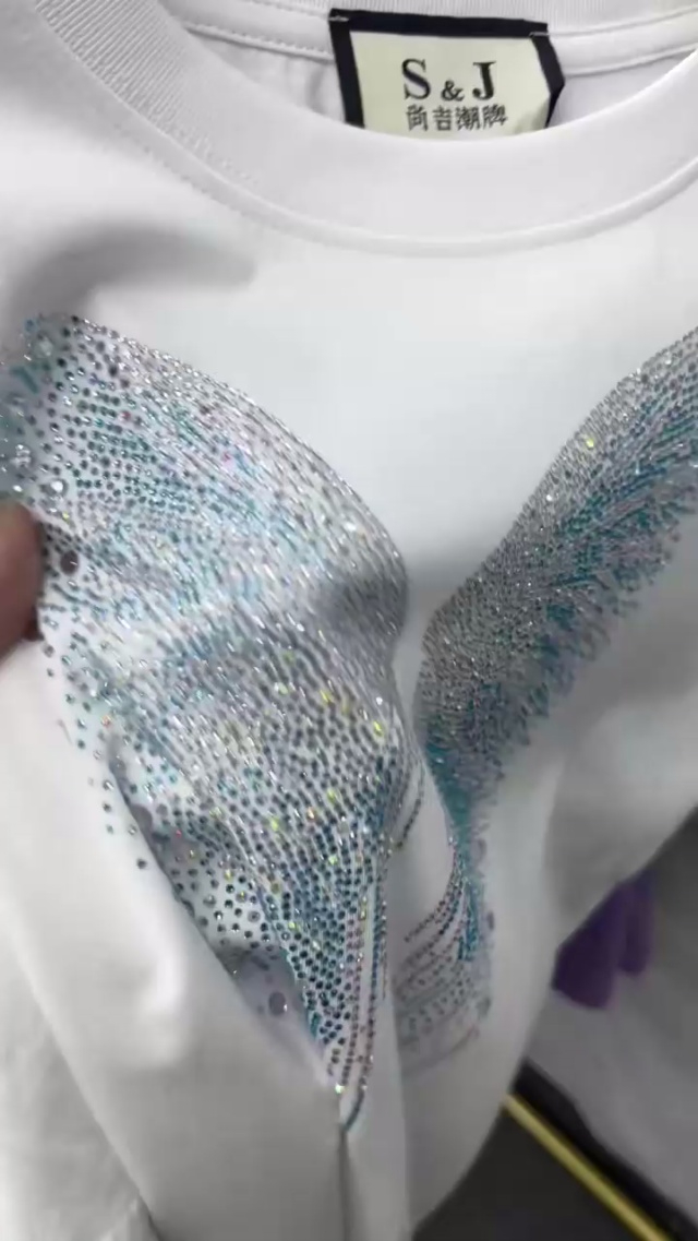 200克双纱纯棉男女同款T恤,有烫钻,光板和印花,没有包装,均码版型够大,...