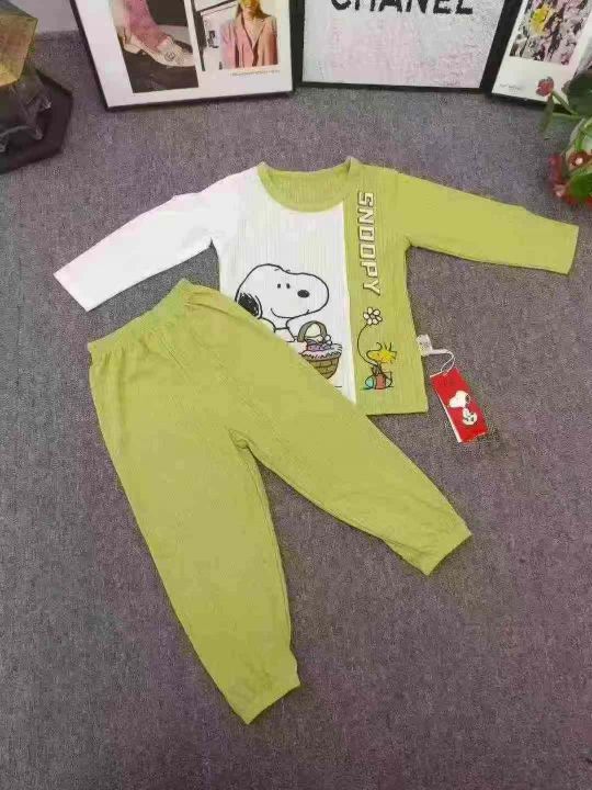 品牌童装长袖家居服套装,数量700套左右,尺码90--150,大码多,整款单色两个品牌(史努比、baby),可分品牌出,独立包装带吊牌,货品整洁质佳