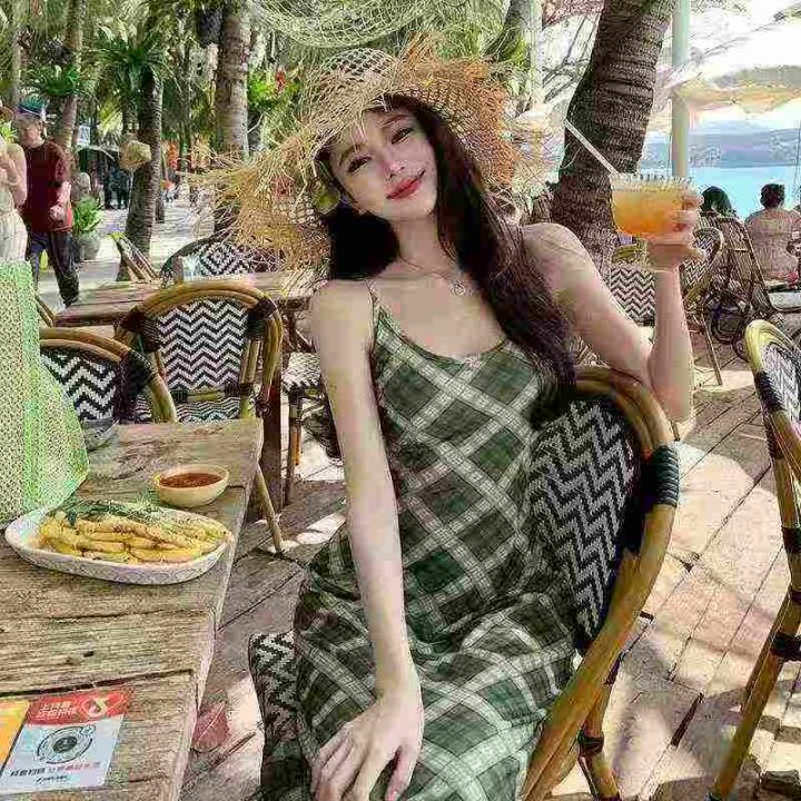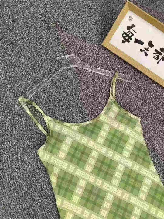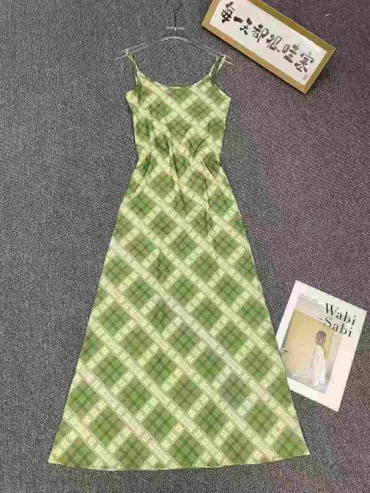 法式复古吊带连衣裙205件8.9,绿色格纹,码数1-4码(S...