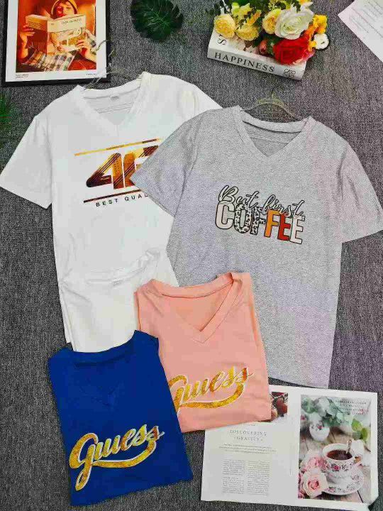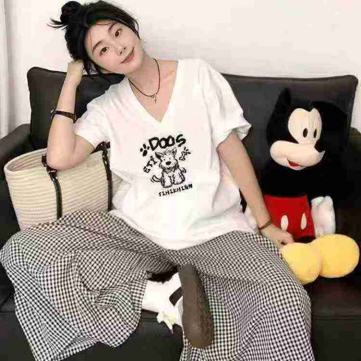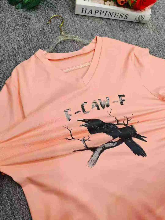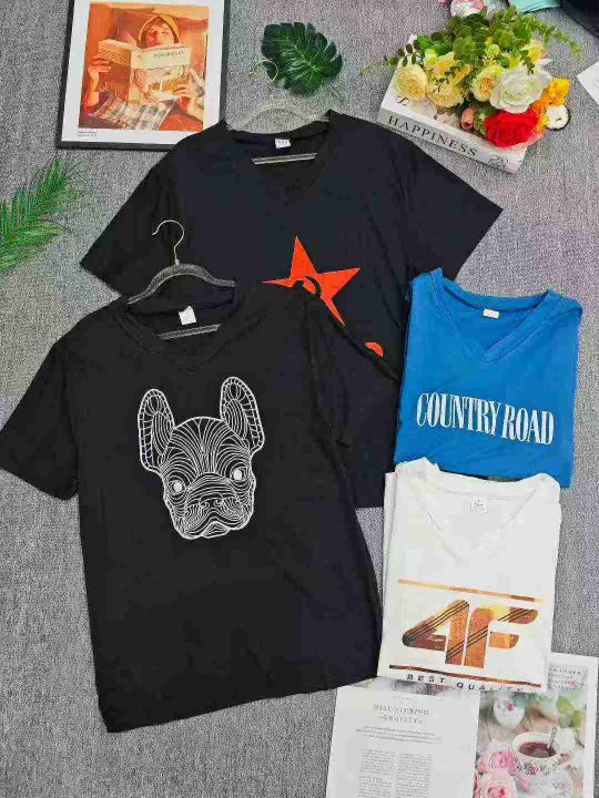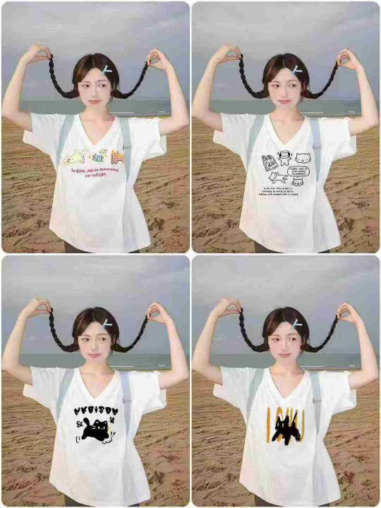 电商仓回收833件靓妹设计款印花宽松显瘦落肩V领T恤,码数S-2XL。面料柔软舒适有弹性,独立包装,分货➕0.5