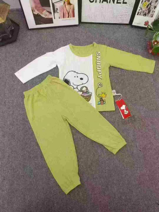 品牌童装长袖家居服套装,数量700套左右,尺码90--150,大码多,整款单色两个品牌(史努比、baby),可分品牌出,独立包装带吊牌,货品整洁质佳