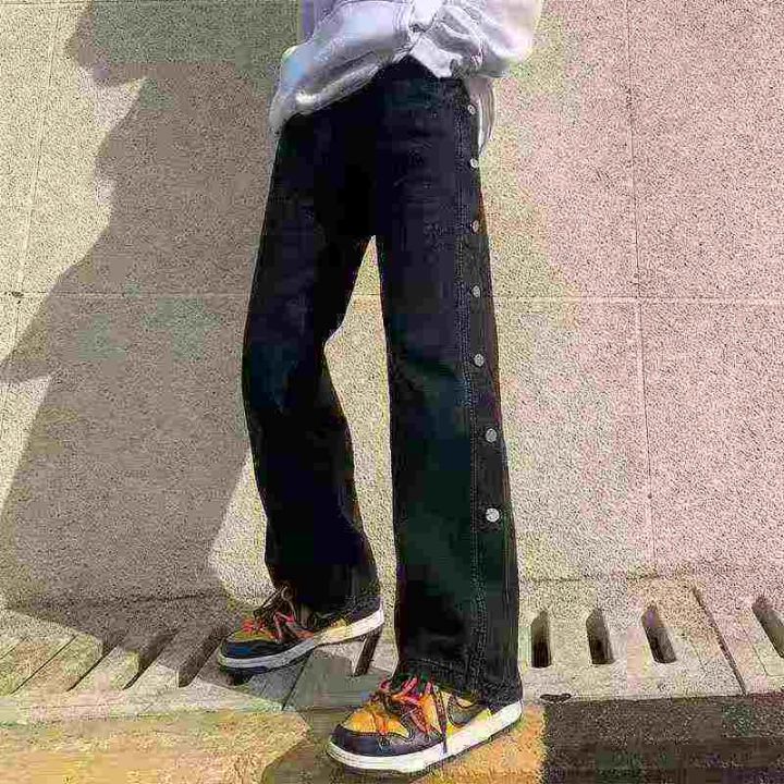 天猫在售470件高品质男女同款潮牌纽扣排扣牛仔阔腿裤,单款单色,S-3XL,全新扣眼未开独立包装带吊牌