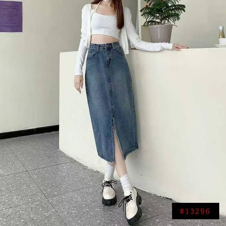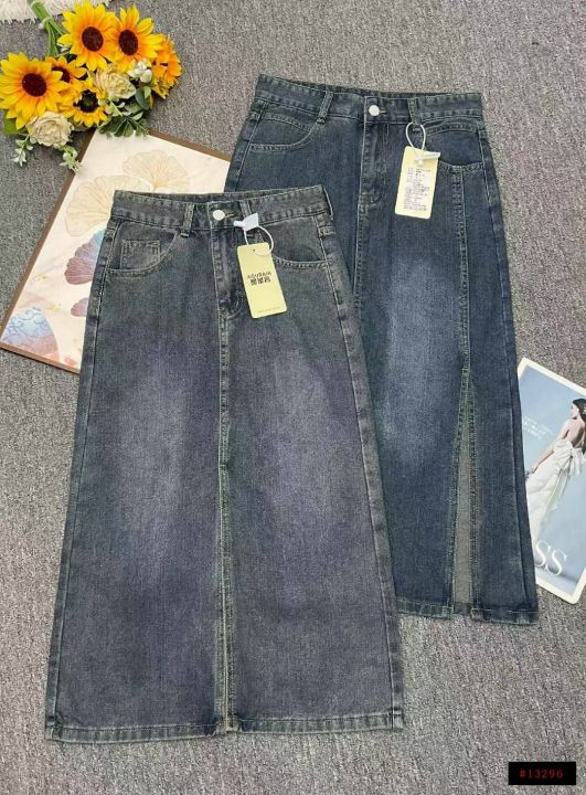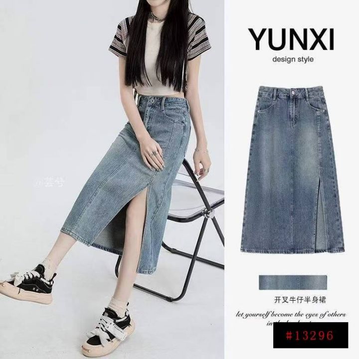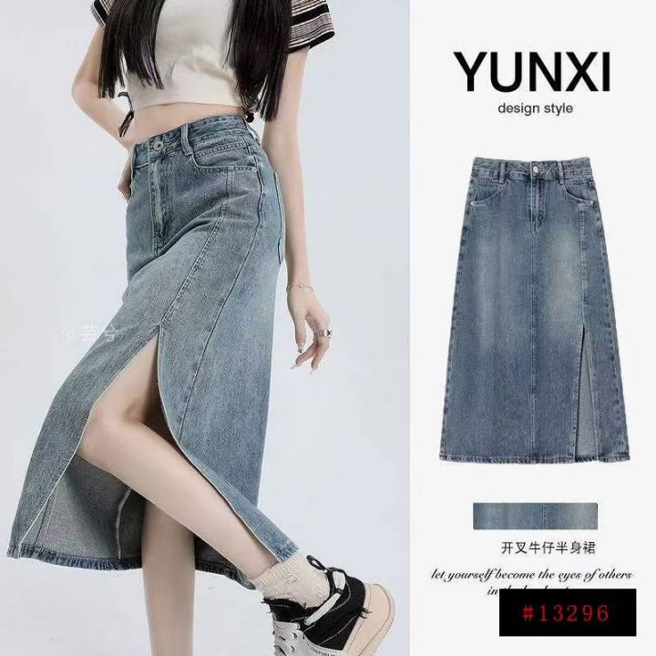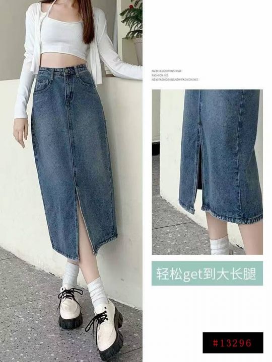 春秋新款洗水棉网红开叉牛仔半身长裙,独立包装带吊牌...