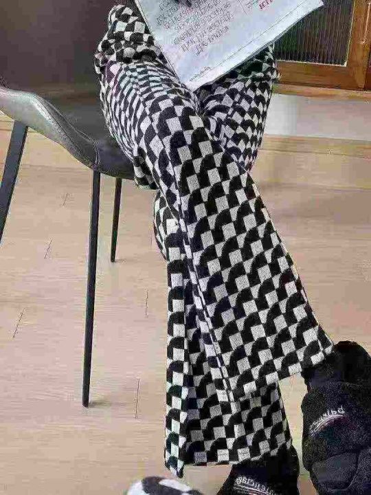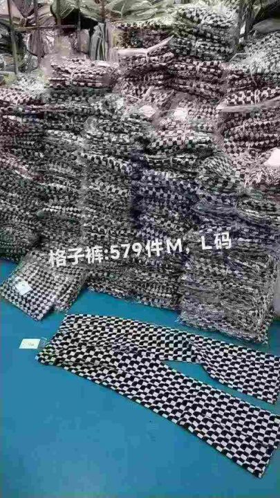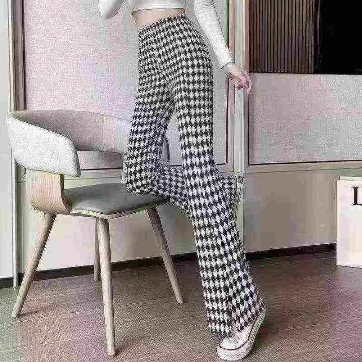 棋盘格子喇叭裤529件8.5,面料微弹,松紧腰,裤脚开叉...