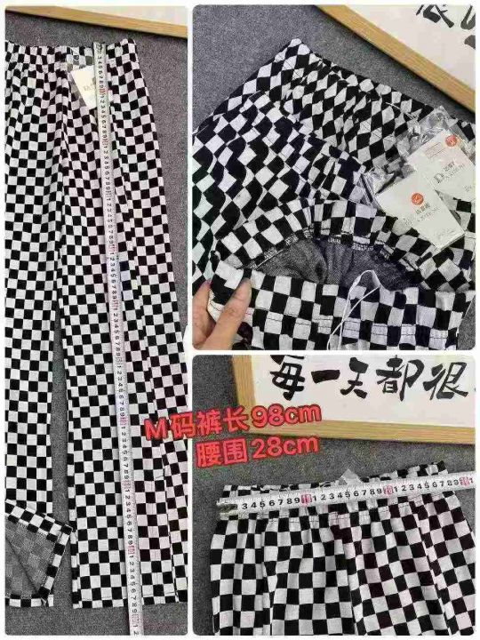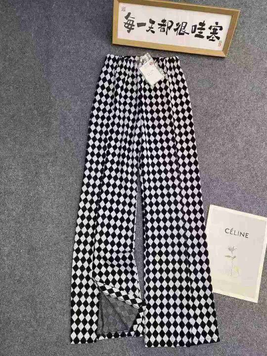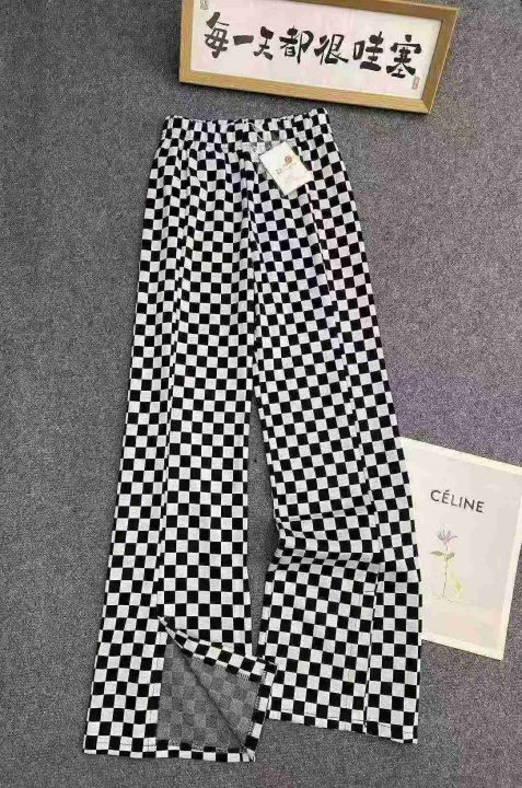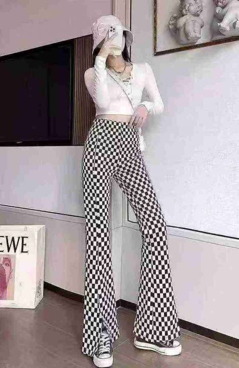 棋盘格子喇叭裤529件8.5,面料微弹,松紧腰,裤脚开叉...