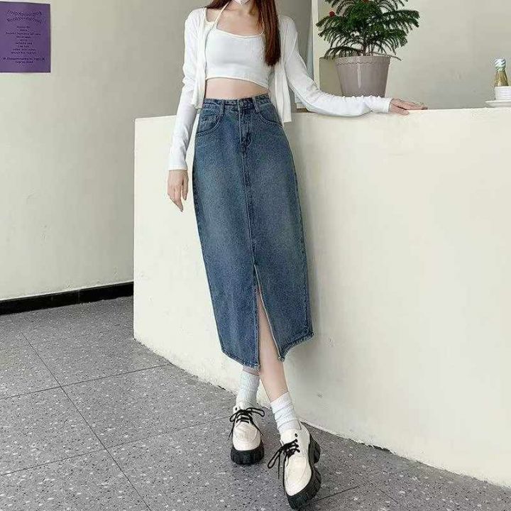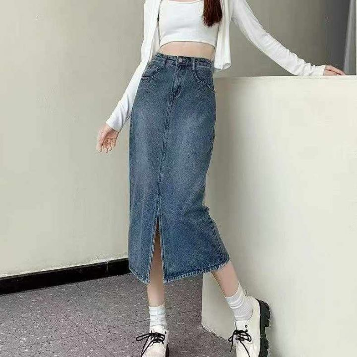 春秋新款洗水棉网红开叉牛仔半身长裙,独立包装带吊牌...