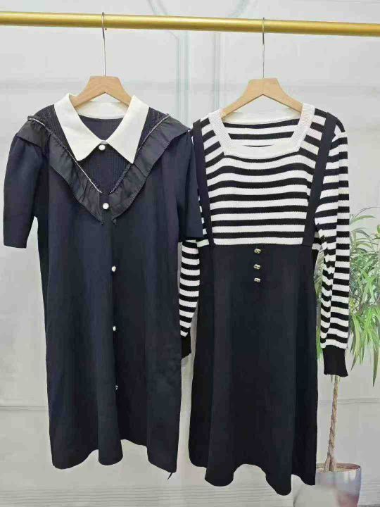 电商仓回收85条秋季新品设计款千金风条纹针织连衣裙系列,码数S-4XL。面料有弹力,每一个款都很好看,深色系为主,独立包装。分货➕1