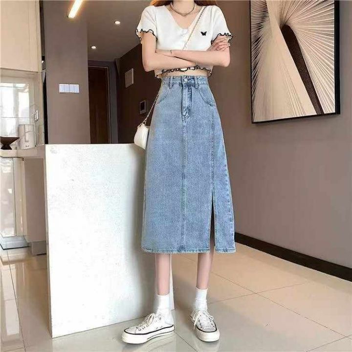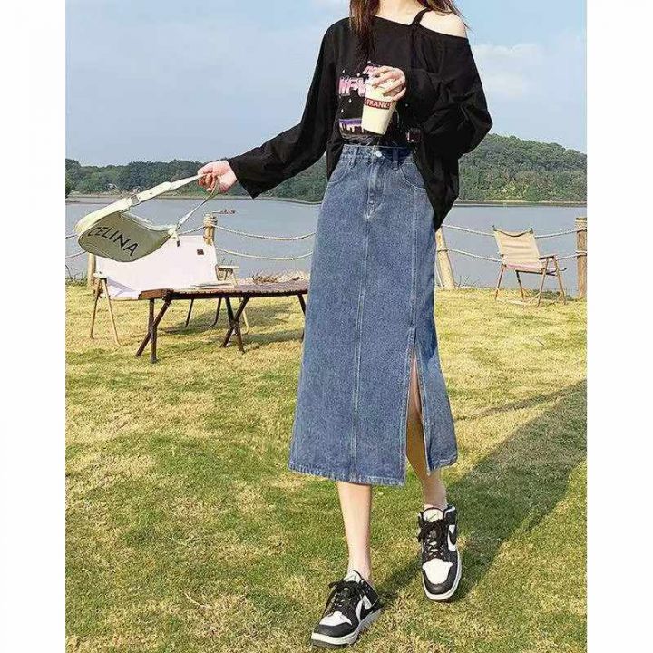 春秋新款洗水棉网红开叉牛仔半身长裙,独立包装带吊牌...