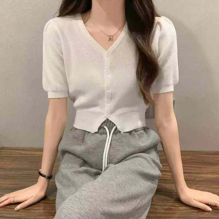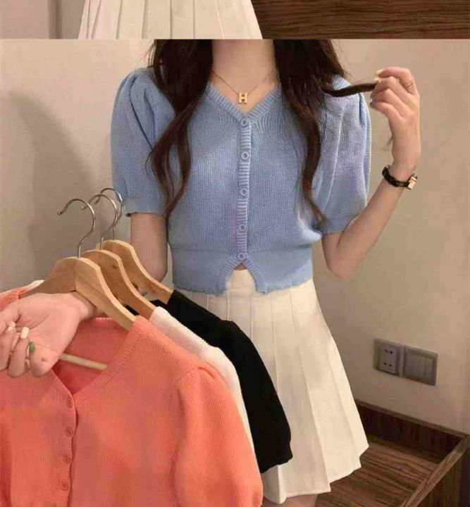 夏季新款法式V领短款收腰显瘦泡泡袖独特小众设计感针织短袖开衫,独立包装,均码面料柔软舒适有弹力,1123件,全清5.9元超低价秒杀!分货加一!