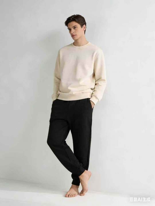 秋冬季加绒卫裤外贸男款宽松冬季加厚束脚裤运动裤子...