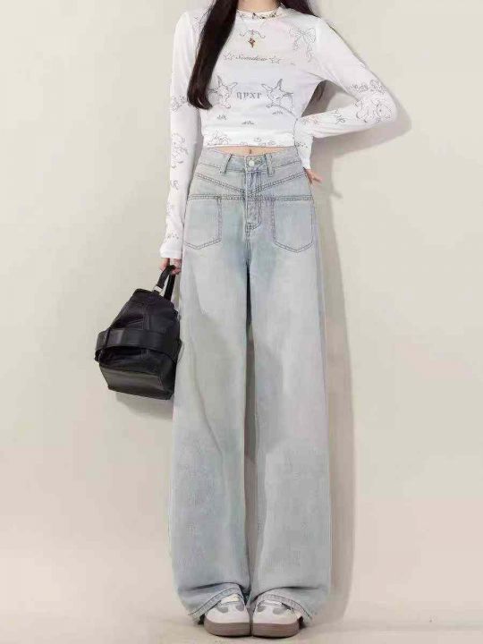 捡漏款,春秋新款洗水棉网红爆款直筒阔腿牛仔长裤,独...