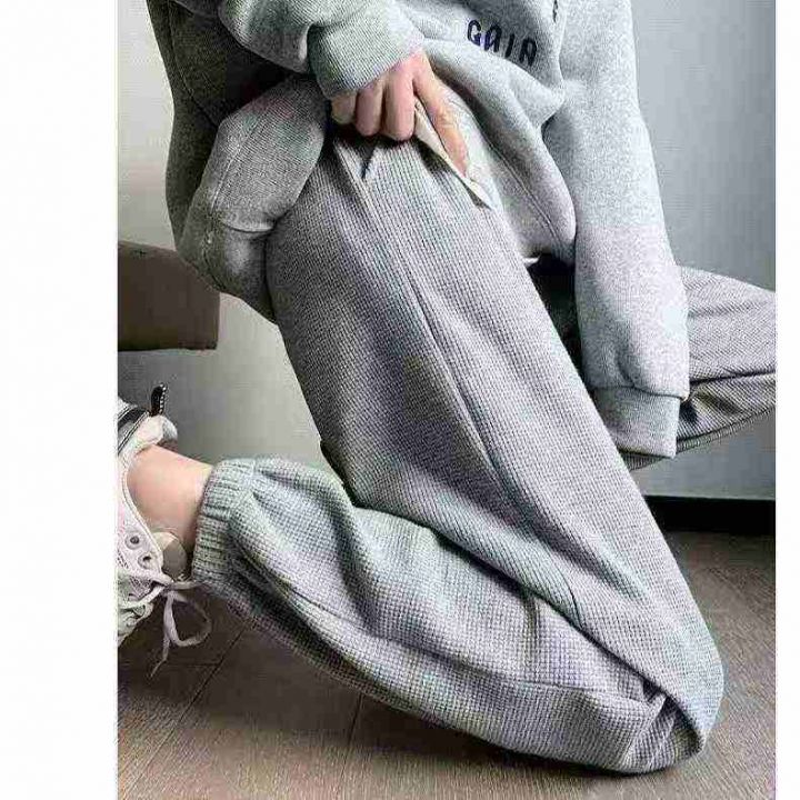 新款裤子男女港风潮牌街头夏季直筒休闲华夫格卫裤,一体绒,S -2 X L码6800件左右. 全清10.8