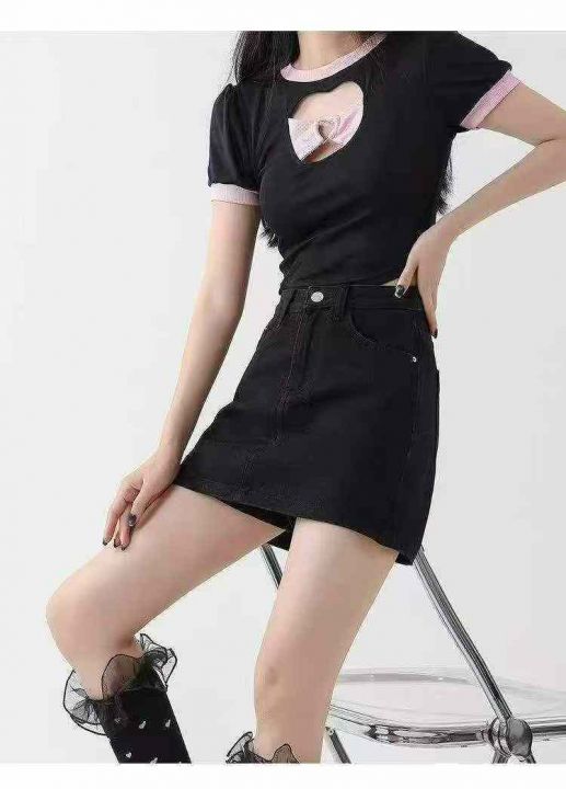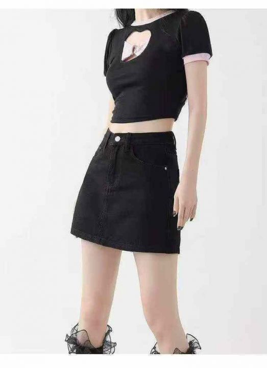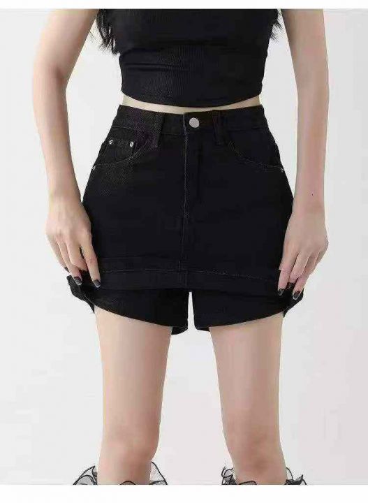 夏季新款洗水棉高腰宽松显瘦牛仔裤裙,独立包装带吊牌...