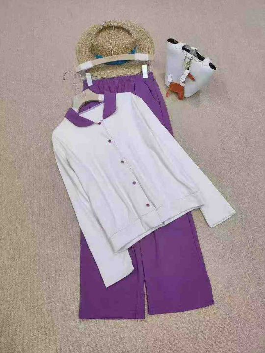 [月亮]:秋冬气质开衫纽扣上衣裤子套装