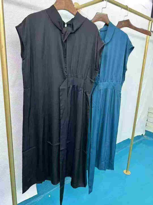 104件真丝 桑蚕丝连衣裙正式场合端庄精致连衣裙女2025新款夏季收腰高级感蓝色显瘦中长裙 蓝色20多件黑色70多件
