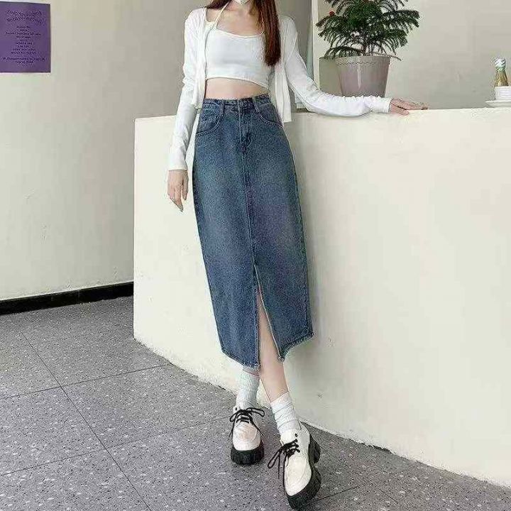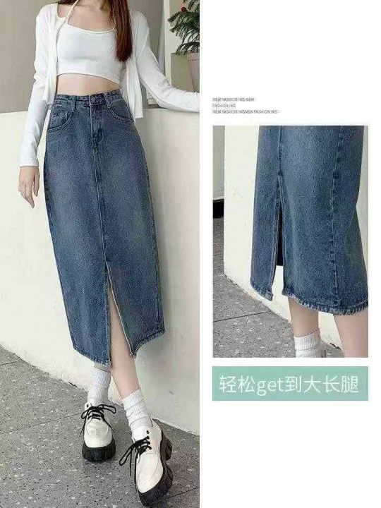 春秋新款洗水棉网红开叉牛仔半身长裙,独立包装带吊牌...