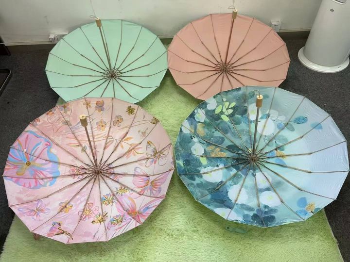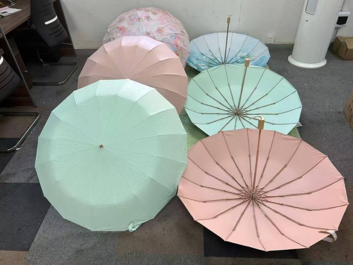 16股彩色花胶清装金骨架金伞架仿木手柄60件*45支=2700...