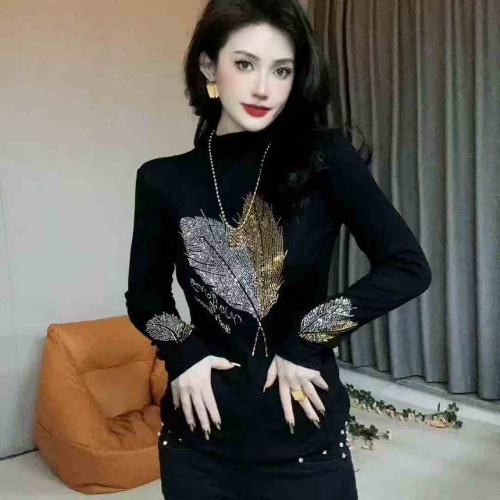 1300件左右金枝玉叶镶钻长袖女装修身打底衫长袖内搭亮...