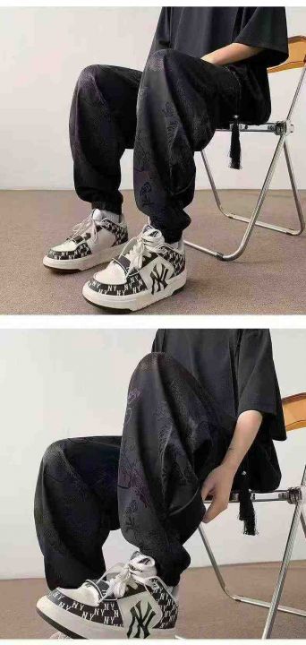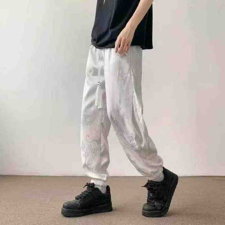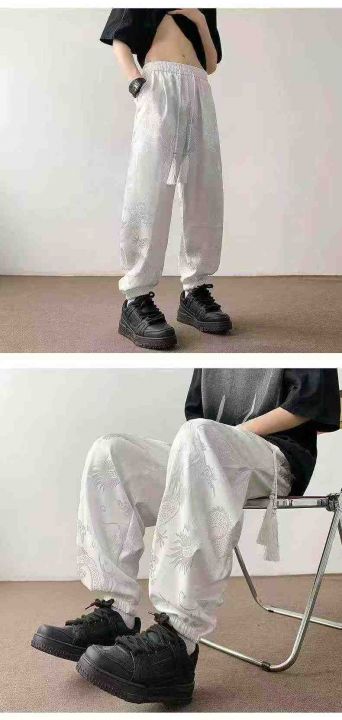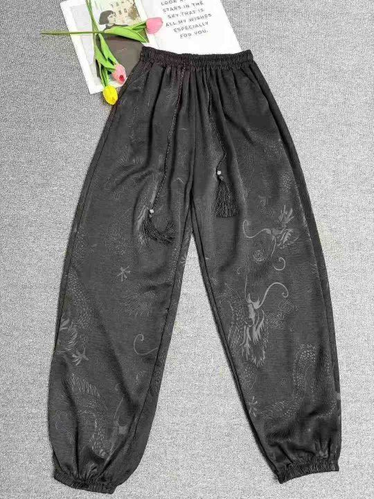男士夏季新款中国风龙纹新中式冰丝束脚抽绳休闲裤,独立包装,数量363条,尺码MLXL2XL3XL5XL