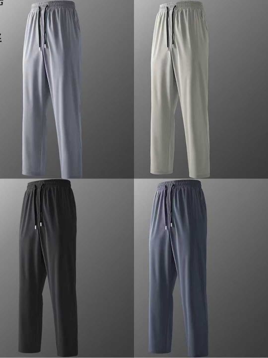 春夏季男士直筒速干裤凉感休闲裤长裤舒适松紧腰男裤,